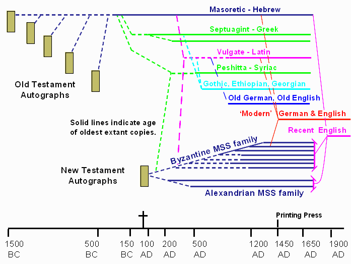 By the multitude of existing copies, the Bible's original text is well established. There is no need to identify a perfect line of transmission. There is no evidence that such a line exists. In fact, due to the nature of hand copied manuscripts, no two manuscripts are exactly alike. If the sentences which open this paragraph are true, how can they be reconciled with Mat 5:18? It would seem that Unless we can find a perfect manuscript line, the 'jots and tittles' have been corrupted, contrary to God's Word. But read the verse again. Did Jesus promise perfect preservation of the written page? No. He spoke of the perfect completion of God's purposes: "till all be fulfilled."