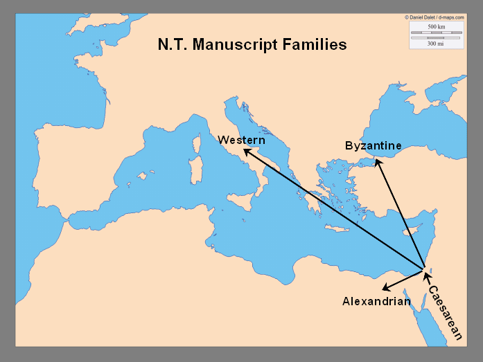 There are four 'families' of NT manuscripts. Each is named for the area in which most of the similar texts were found. The two major families are as shown below: